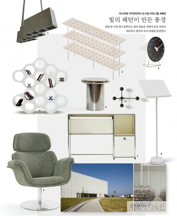 6 1947년 뉴욕 현대미술관(MoMA)이 주최한 섬유 디자인 공모전을 위해 탄생한 임스스튜디오의 도트 패턴과 카시나의 기술력이 만나 완성한 도트 패턴 조명등은 카시나 제품으로 아티브.