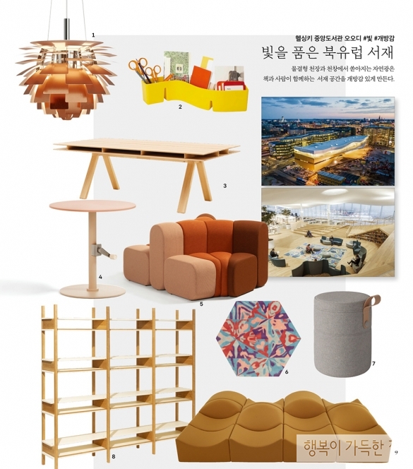 6 이탈리아의 마을 광장에서 흔히 볼 수 있는 꽃가게 진열대에서 영감을 받은 다기능 수납장 람파Rampa 셸프는 카락터 제품으로 에이치픽스. 네 개의 계단이 강화유리 상판을 얹은 채 책장 역할을 하고, 내부는 수납장으로 구성된다.