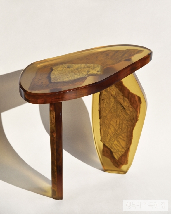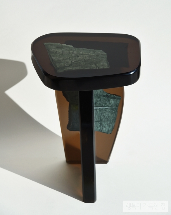 박원민은 돌·나무·금속 같은 원재료가 지닌 질감과 시간이 만들어낸 변화를 탐구하는 조형 작가다. 그는 재료를 최소한으로 다루며 자연 그대로의 성질을 드러내는 방식으로 작업한다. 대표작 ‘Plain Cuts_Stone & Steel’은 자연석의 거친 표면과 직선으로 절단한 면, 그리고 철판의 인공적 질감을 한 화면에 대비시킨다. ‘Plain Cuts_Tree’는 나무 단면의 결을 금속판으로 이어 확장한 작품으로, 오동나무 수피에 옻칠을 입혀 나무 고유의 질감과 시간성을 보존한 것. 박원민의 설치 작품은 재료가 지닌 물성과 그것이 공간에서 맺는 관계를 직접 체감하게 한다. 따라서 관객은 자연과 인공이 만나는 경계, 그 긴장과 균형 속에서 사물과 인간 및 자연의 관계를 새롭게 인식하게 된다. 이러한 태도는 DDP에서 열린 <디자인 마이애미 인 시추 서울>(9월 1~14일)에서도 드러났는데, 한국 디자이너들의 실험적 작업을 세계 무대에 소개하는 맥락 속에서 그의 작품은 재료와 시간에 대한 성찰로 존재감을 발휘했다.  Wonmin Park, ‘Plain Cuts Remediated Low Table SS1901’, 2022