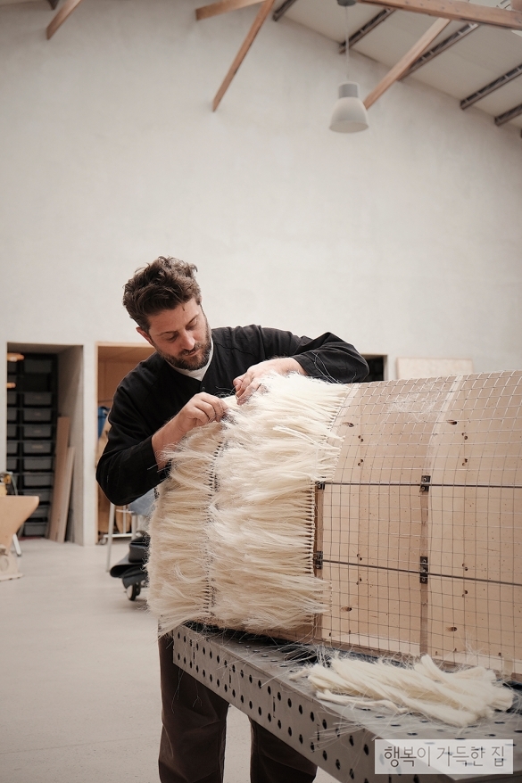 지금 짓는 집은 차분하고 고요한 분위기를 지니고 있습니다. 마치 이번 전시장처럼요. 몇 해 전 런던의 집과 스튜디오에서 화재가 나 모든 것을 잃은 경험이 제 삶을 바라보는 방식을 완전히 바꾸는 계기가 됐습니다. 불길 속에서 살아남은 것은 금속이나 천연 재료뿐이었죠. 그때부터 집과 옷, 인테리어에 이르기까지 천연 재료와 천연 염료만을 사용하고 있습니다. 플라스틱이나 합성수지는 전혀 쓰지 않게 됐지요.