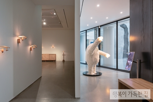 더페이지갤러리 전시 전경. 마치 집과 같은 분위기를 연출했다. 토토목슬 캐비닛과 테이블이 돋보인다.