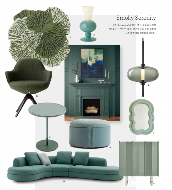 9 부드러운 세이지 그린 컬러가 공간에 은은한 깊이를 더하는 디에드로Diedro 수납장은 갈로티&라디체 제품으로 인피니(02-3447-6000).
