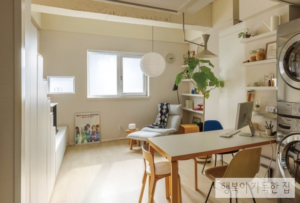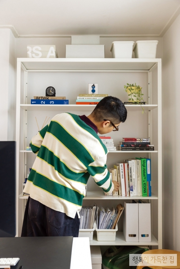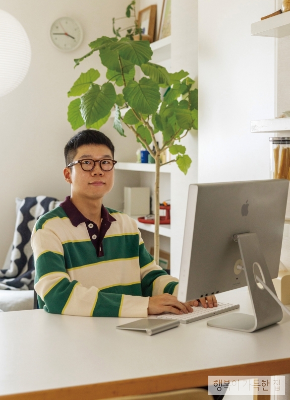 “혼자 살며 깨달은 게 있어요. 회사 업무와 개인 작업, 그리고 집 꾸미기의 공통점은 덜어내는 일이라는 것이에요. 몇 년 전만 해도 거실 선반에 여러 물건이 빼곡했는데요, 그때에 비하면 지금은 잔가지를 쳐낸 식물처럼 깔끔해진 편이거든요. 차이도 분명해요. 과제나 업무는 브리프가 있고 마감 기한이 있지만, 내 집에 산다는 건 마감일이 없어요. 그러니 끊임없이 다듬을 수도, 덜어냈다가 다시금 이전 모습으로 되돌릴 수도 있죠. 내 집에 산다는 건 업무나 작업 같은 완성형이 아닌, 내가 생각하는 아름다움으로 끝없이 변화하는 유기체 혹은 계속 갱신할 수 있는 순수한 작업에 가까워요.”