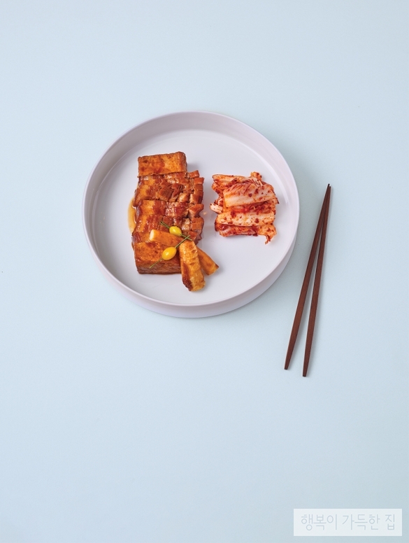 김장하는 날 어김없이 등장하는 보쌈은 생김치의 참맛을 즐길 수 있는 음식이다. 복을 상징하는 돼지고기를 쌈에 싸서 먹는다고 하여 붙인 이름으로, 품앗이의 수고를 말끔히 씻어내는 고마운 음식 문화이기도 하다. 돼지고기찜을 보쌈보다 고급스럽고 색다르게 즐기고 싶다면 연저육찜이 제격인데, 어린 돼지고기로 만들었기에 붙인 이름으로 조선 시대 궁중에서 의례 때도 올리는 귀한 음식이었다. 한국인이 가장 좋아하는 부위인 삼겹살로 만들어도 잘 어울리며, 배추겉절이를 적당한 크기로 잘라 가지런히 곁들이면 먹기 편하다.