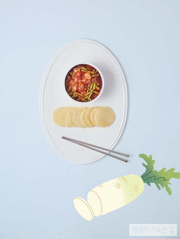 가을철의 산물로 한국인이 즐겨 먹는 대표 채소로 첫손에 꼽히는 것이 배추와 무다. 음식의 소화를 돕는 저열량·고식이 섬유 식품인 배추와 무는 어떻게 먹어도 맛있지만, 무는 부위에 따라 맛이 제각각이다. 생채는 물론 부침가루를 묻혀 전으로 먹을 때는 매운맛이 강하고 식이 섬유가 많이 들어 있는 뿌리 부위를 피하는 것이 좋다. 굴도 가을과 겨울의 길목에 있는 이 계절에 포기할 수 없는 미식으로, 채소와 함께 무쳐내면 손 많이 가는 생선 요리 대신으로도 손색없다. 이때 쌀을 발효시켜 만든 라이스비니거를 넣어보자. 개운한 맛이 더해진다.