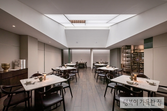 한지로 마감한 천장 덕분에 자연광이 스며드는 듯한 느낌을 자아낸다.